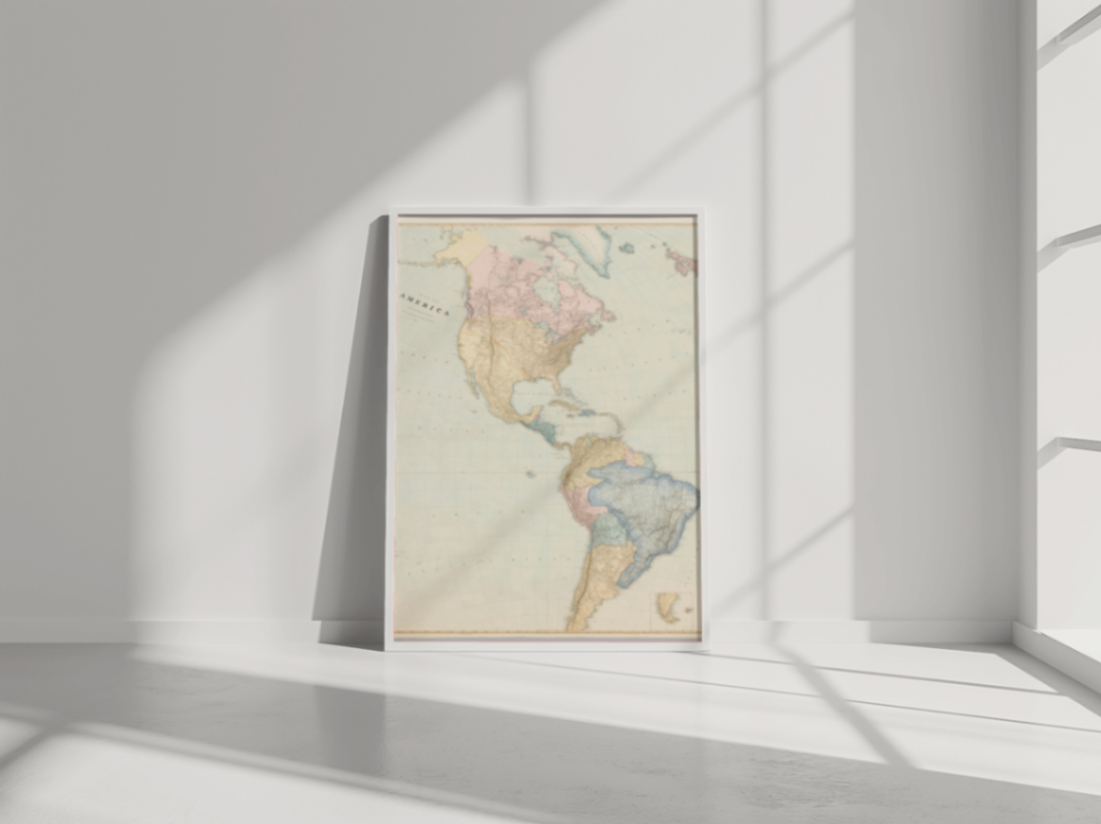 El Mapa de las Américas de 1827 es una de las últimas y más completas representaciones del continente americano elaboradas por Aaron Arrowsmith, uno de los cartógrafos británicos más influyentes del siglo XIX. La obra cubre toda América del Norte y del Sur, desde el Ártico hasta Tierra del Fuego, con una precisión y limpieza visual características de la escuela inglesa de cartografía científica.